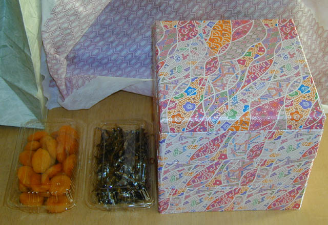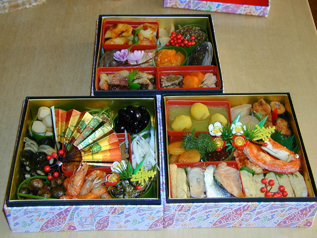 ちなみに、見た通りおせちのお重は紙製なんですが、結構いい値段するそうで、それなりにいい作りになってますよ。すくなくともこれ1回で終わらせるのはもったいない感じ。で、これが三段のお重のすべてです。